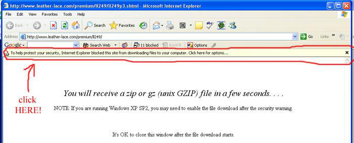(If you don't have service pack 2 installed, you won't get the security warning and the file should simply start downloading)